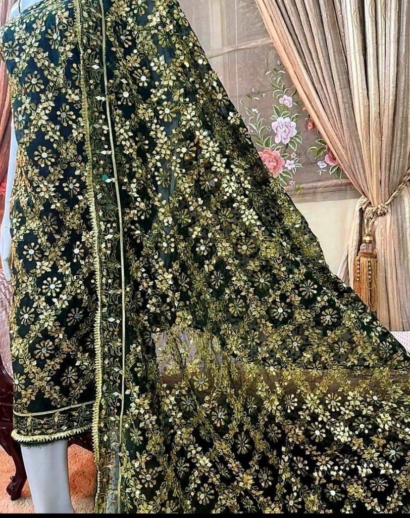 Elevate your wardrobe with the Crinkal Shafon Handmade Goti Ladies 2-Piece set, expertly crafted for elegance and comfort. This ensemble features delicate hand-embellished goti work on lightweight crinkal shafon fabric, offering a refined texture and graceful drape. Perfect for formal occasions, it combines traditional artistry with modern style, ensuring a sophisticated look that stands out effortlessly.
